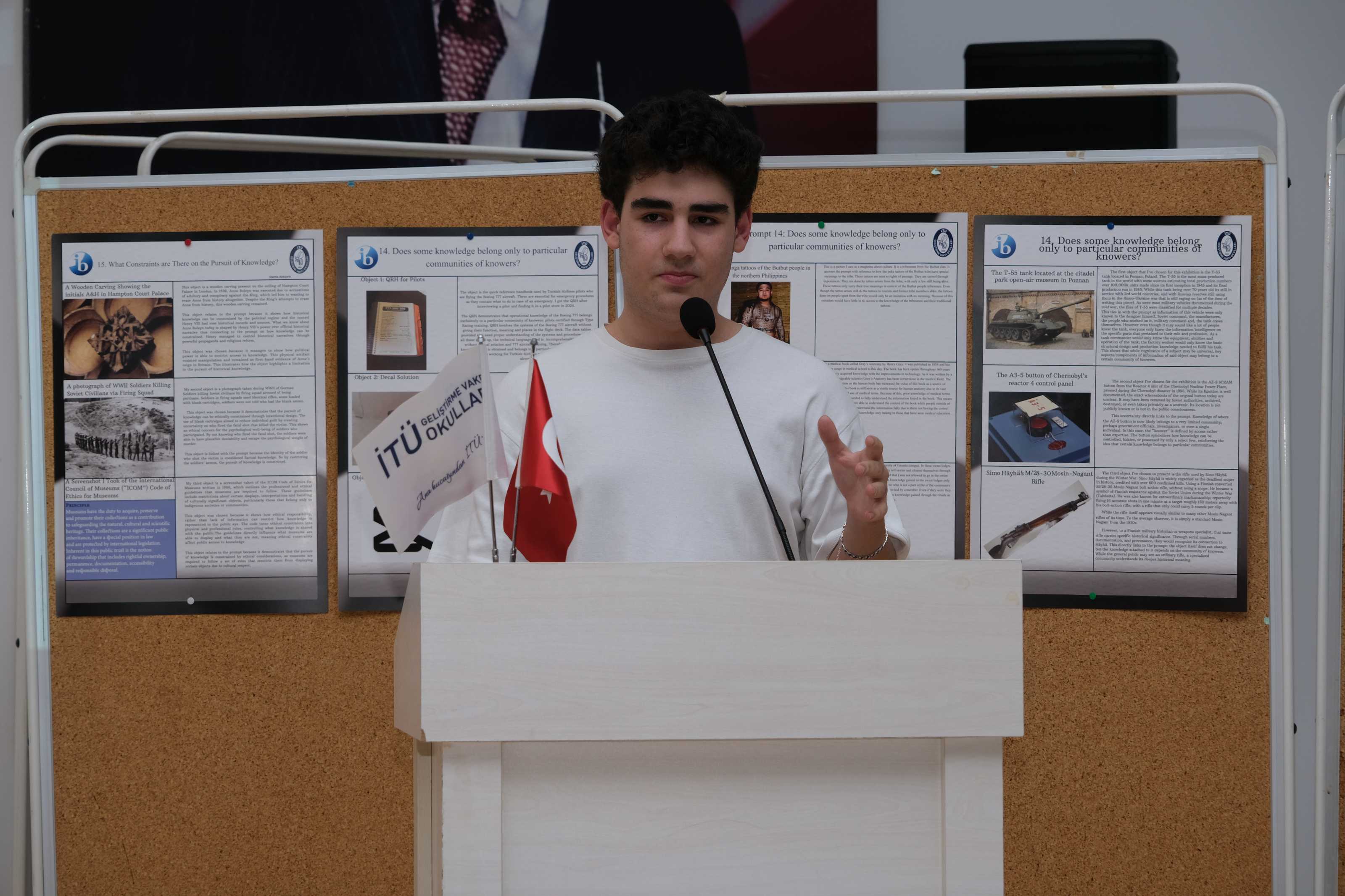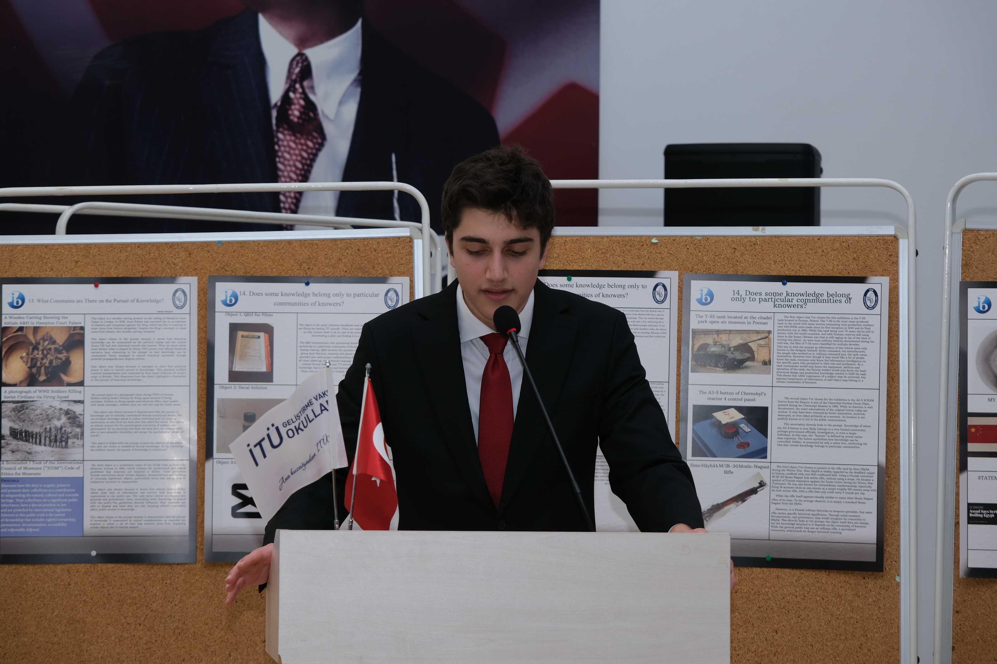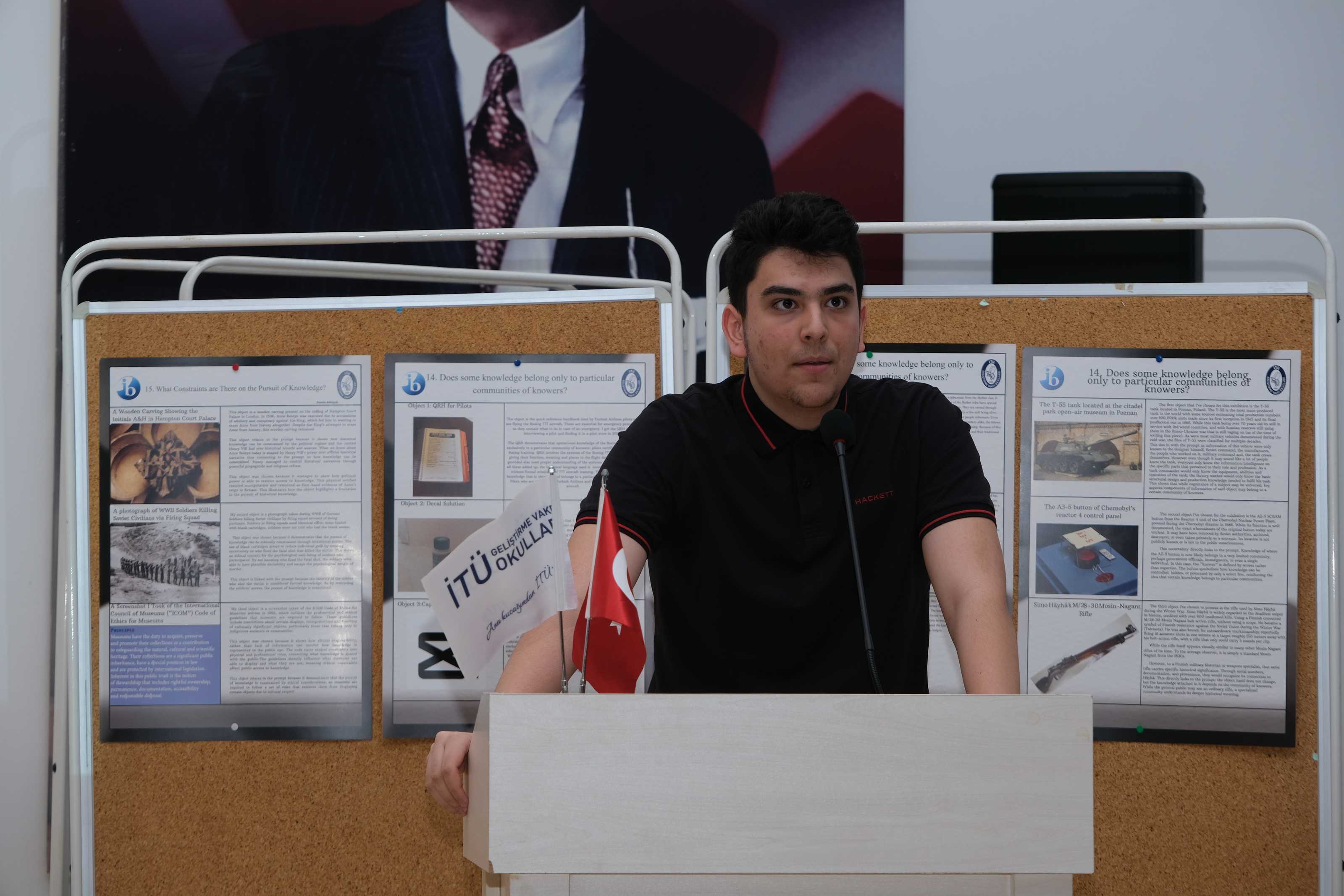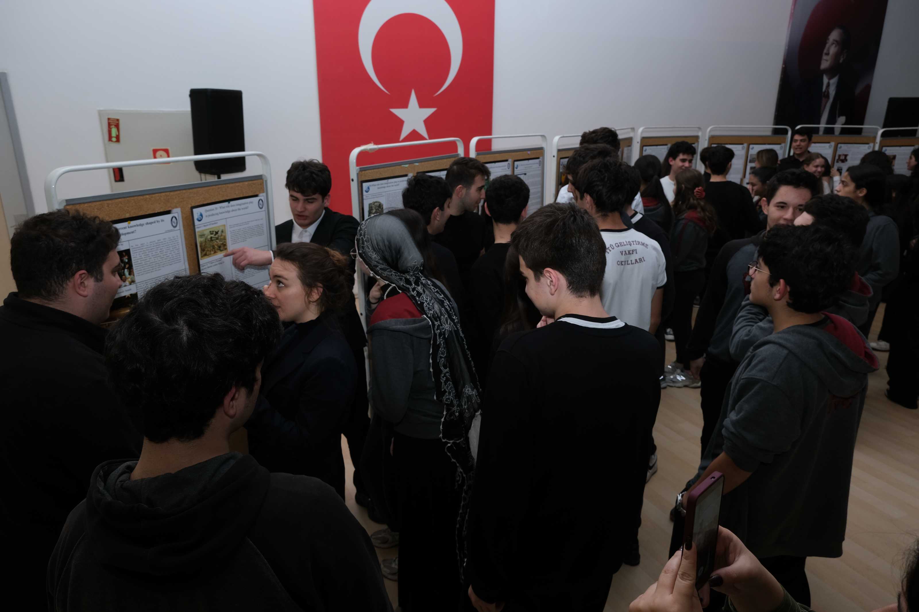 11IB sınıfı öğrencilerimiz, Bilgi Kuramı (Theory of Knowledge) dersinin iç değerlendirmesi kapsamında düzenlenen Bilgi Kuramı Sergisi’nde (TOK Exhibition) çalışmalarını katılımcılara tanıttı.