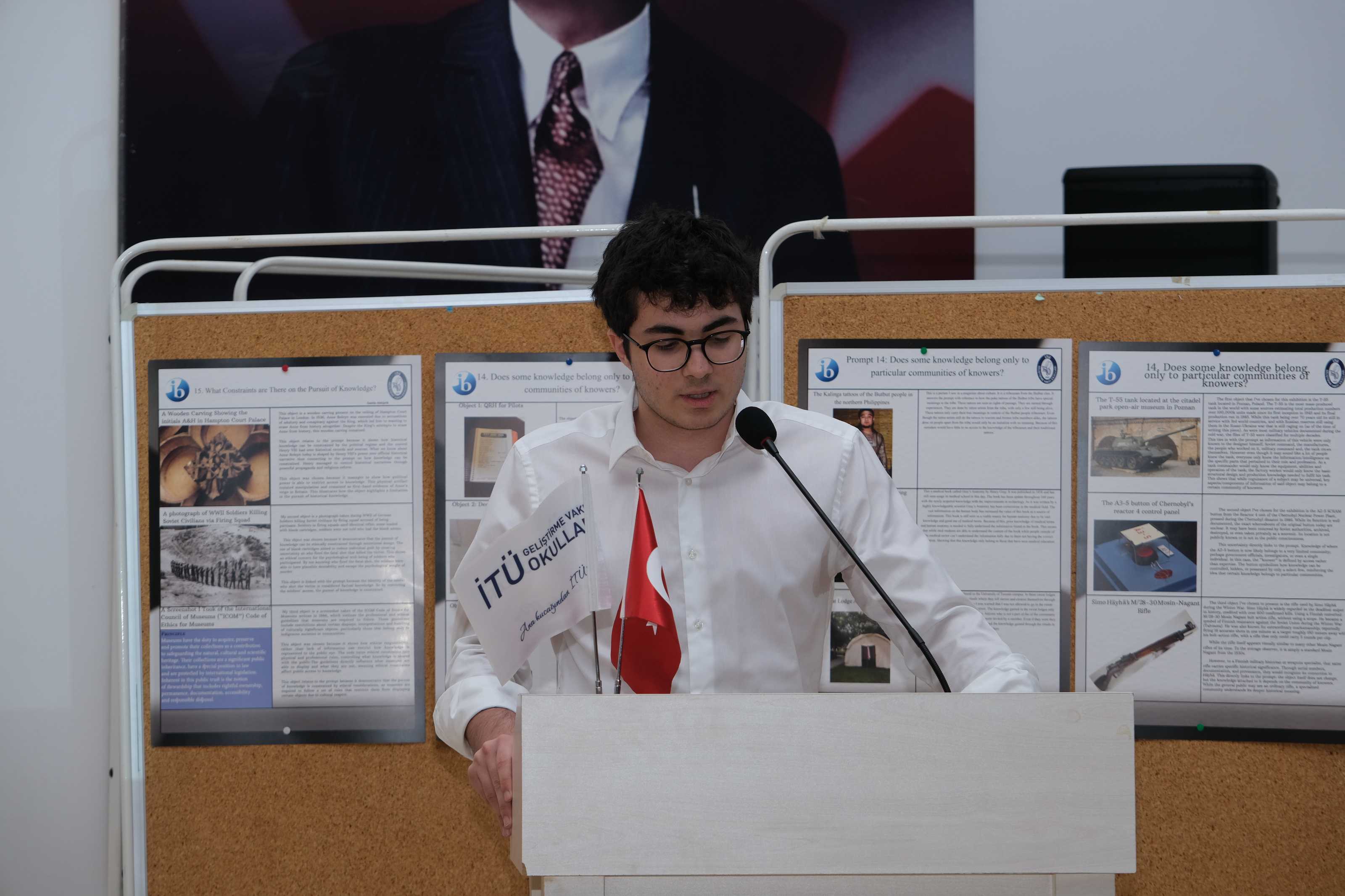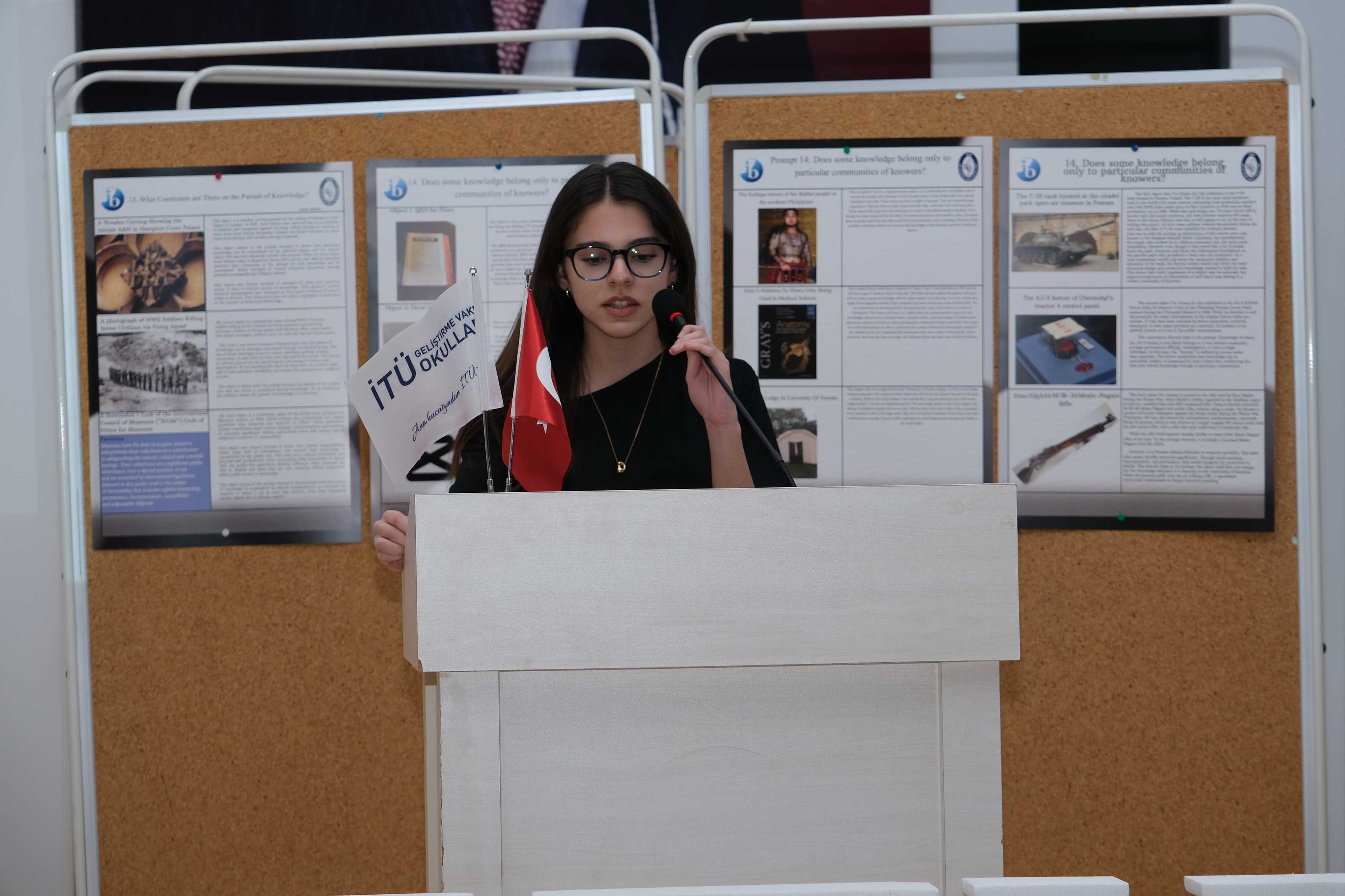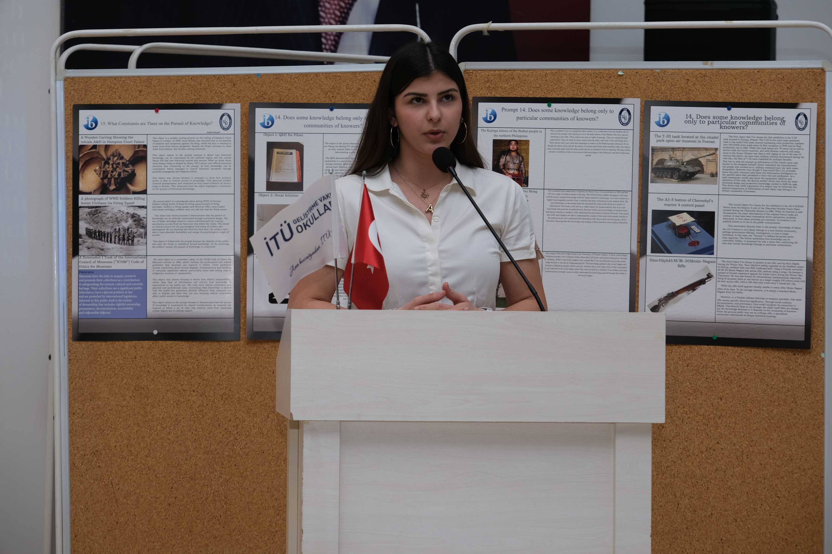 11IB sınıfı öğrencilerimiz, Bilgi Kuramı (Theory of Knowledge) dersinin iç değerlendirmesi kapsamında düzenlenen Bilgi Kuramı Sergisi’nde (TOK Exhibition) çalışmalarını katılımcılara tanıttı.