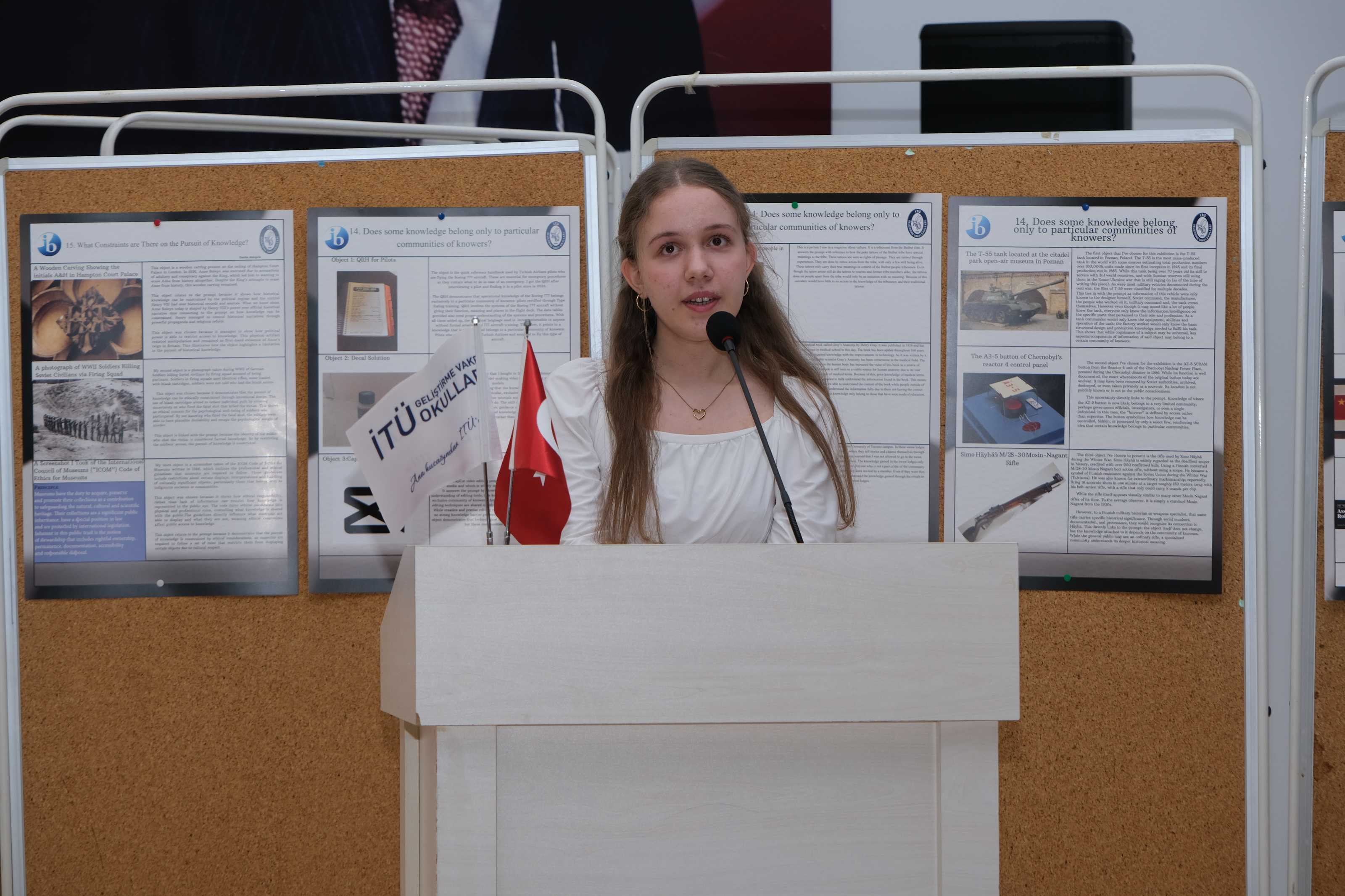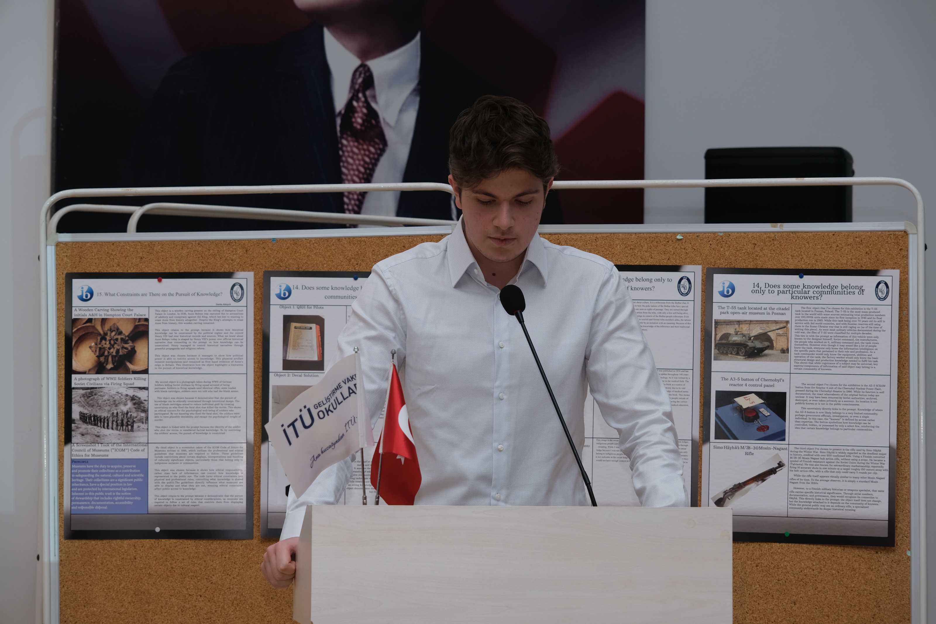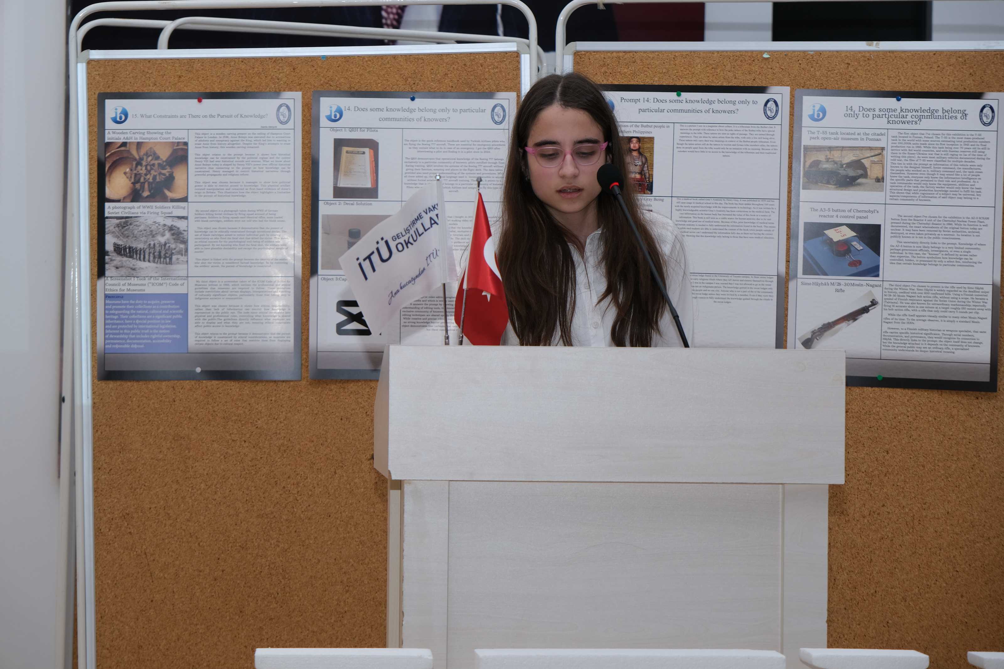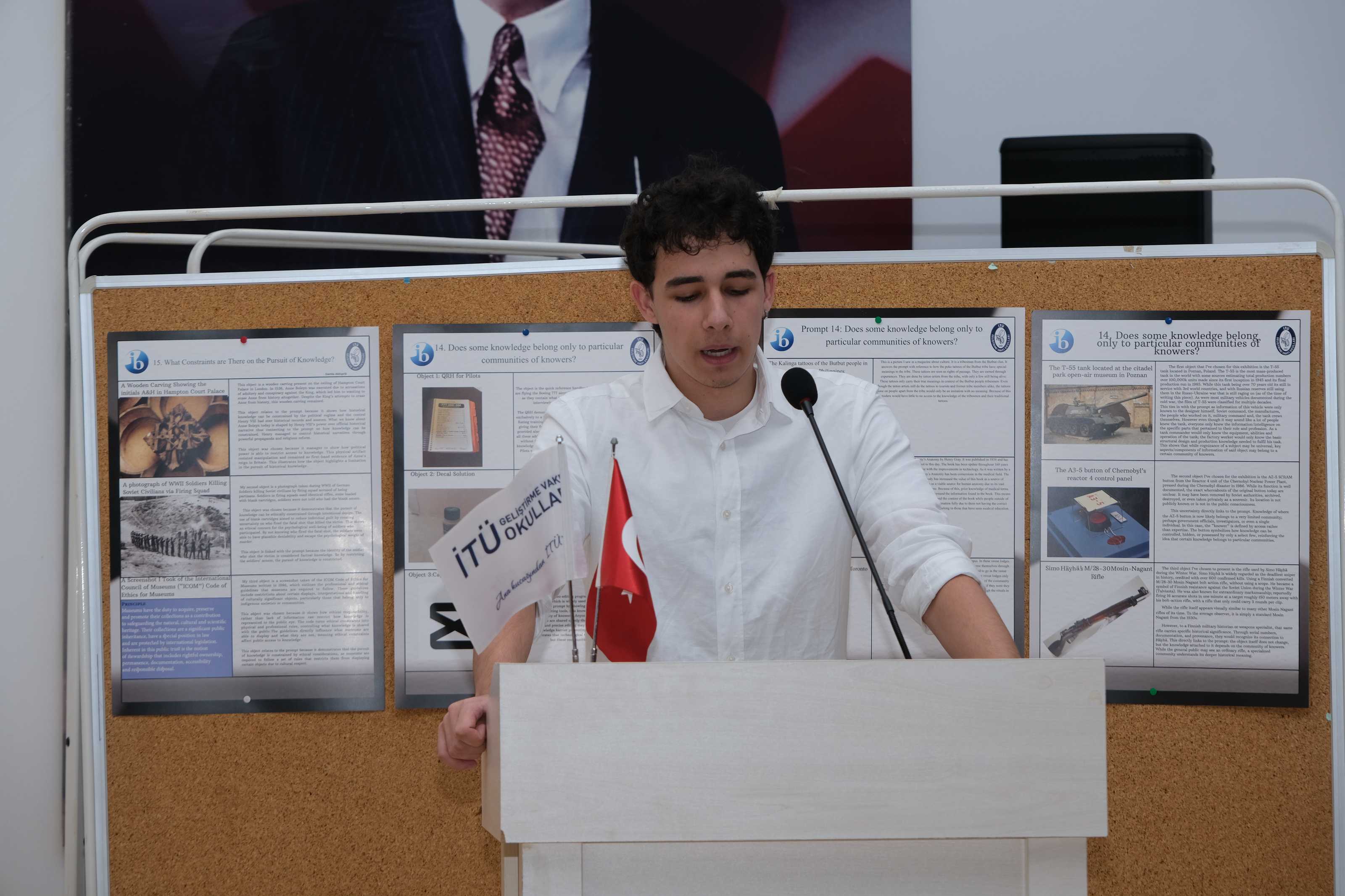 11IB sınıfı öğrencilerimiz, Bilgi Kuramı (Theory of Knowledge) dersinin iç değerlendirmesi kapsamında düzenlenen Bilgi Kuramı Sergisi’nde (TOK Exhibition) çalışmalarını katılımcılara tanıttı.
